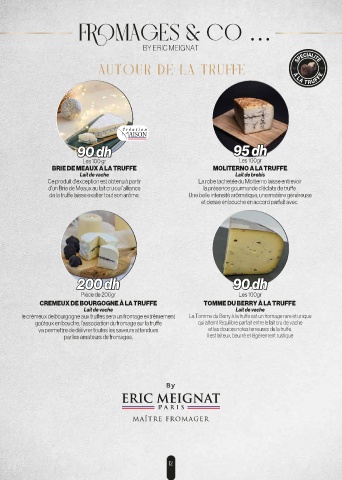 d'un Brie de Meaux au lait cru ou l’alliance la présence gourmande d'éclats de truffe.